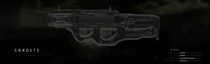 • Cordite — универсальный пистолет-пулемёт с небольшим уроном, но высокой скоростью стрельбы. Идеально подходит для перестрелок в небольших помещениях.cordite calka