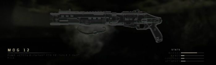 • MOG 12 – мощный дробовик, стреляющий взрывными помпами. В прямых руках способен повалить любого врага. moggg
