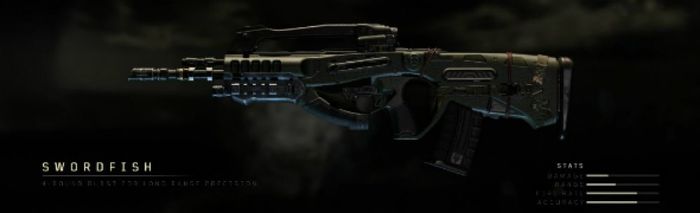 • Swordfish – тактическая винтовка, стреляющая очередью из четырёх патронов. Досадно, что не всегда это очереди хватает для убийства, что существенно снижает котировку Swordish в списке топ-оружия Блэк Опс 4. swordyash
