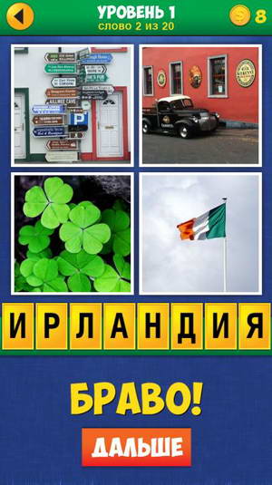 Игра 4 фото Путешествие вышла совсем недавно, а мы уже приготовили для вас ответы на весь первый уровень! Напомню, смысл этой игры 4 фото 1 слово заключается в том, чтобы по четырем картинкам найти «хитрое» слово. Оно скрывает название города, достопримечательности или же страны. В каждом уровне 20 заданий, то есть вам необходимо угадать 20 слов. Вы удивитесь, насколько поразительны и интересны разные уголки нашей планеты. И если в реальной жизни увидеть их вам мешали самые разные причины (нехватка времени, денег, постоянные бытовые проблемы), то угадывая ответы на игру 4 фото 1 слово вам придется попутешествовать по всему миру. Спасибо интернету и разработчикам 4 фото 1 слово Путешествие за такую возможность! Как я уже говорила, вам будут даны четыре изображения, связанные одним понятием. Простота (а вместе с тем и сложность) этого варианта 4 фото 1 слово состоит в том, что тип отгадки известен вам заранее – это не признак, не действие и не предмет, но название города, страны или места, побывав в котором вы сможете сделать такие снимки. Естественно, некоторые уровни головоломки будут простыми до безумия. Вам будет достаточно одного взгляда на любое фото из задания, чтобы дать ответ. Например, я так угадывала задания, связанные с Россией и Украиной, где все знакомо. Однако не думайте, что прохождение 4 фото 1 слово Путешествие можно одолеть с наскока. Уровней здесь много, да и далеко не все задания так известны как Москва с ее Кремлем или Киев с его Майданом. Если у вас возникли сложности и вы не можете подобрать правильный ответ на задание, всегда можно воспользоваться нашей шпаргалкой. В ней есть правильный ответ, подробное описание картинок и скриншот. Успехов в игре!