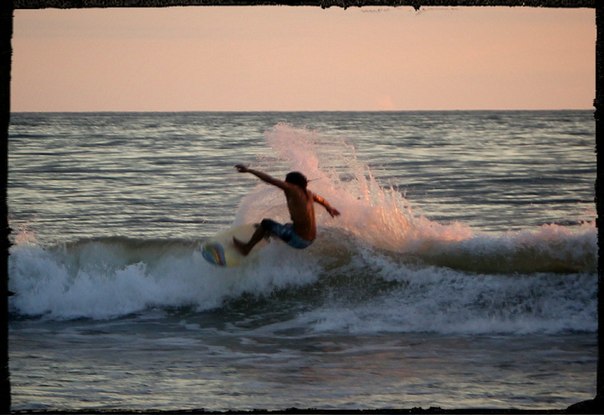 2. Закат в Хако - в море. Это очень красиво. Сёрферы это знают, поэтому любят позировать на закатных волнах. Наверное, сотни туристов каждый день фоткают их в лучах уходящего солнца. Я тоже не удержался: некоторые действительно достойны обложки журнала о спорте!