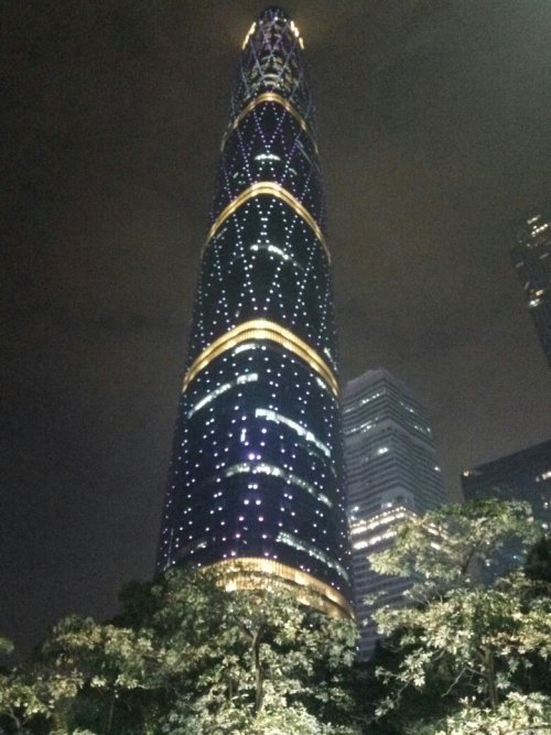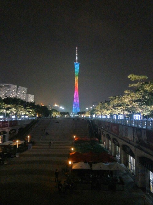 Центр Гуанчжоу красив не только днем, но и ночью. Вас встречает обилие огней: разноцветно подсвечено всё, начиная от дороги в парке до небоскрёбов. Однако, ночная активность в центре довольно быстро сходит на нет: в 10 вечера большинство магазинов и ресторанов уже закрыто, в 11 гаснут небоскрёбы, а в половину двенадцатого прекращает работу и метро. Многочисленные китайцы словно растворяются в воздухе и на город опускается тихая безлюдная ночь.