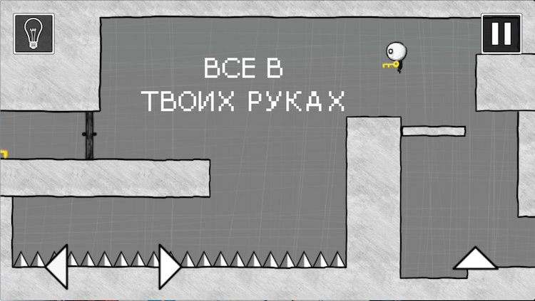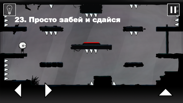 Управление в игре что ни на есть самое простое, так как вам будет предоставлено всего три кнопки (которые еще придется поискать в третьей части) - это прыжок, стрелка вправо и влево. Однако, проходить некоторые уровни придется с применением гироскопа, наклоняя смартфон в ту или иную сторону или разбивая предметы, тапая по экрану. Графическая составляющая также находится на примитивном уровне и понравится всем любителям минимализма - проще говоря, в игре нет ничего лишнего. That Level Again выполнена в черно-белых тонах с редкими вкраплениями красного, желтого и зеленого цветов. На самом деле, такое оформление помогает сосредоточиться именно на поиске правильного метода, разгадке, не отвлекая внимание пестрыми красками или второстепенным паном.