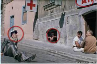 На ней, по старой традиции, мы отыскали три фотоляпа: Миронов вместо главного персонажа Никулина, надпись "аптека", и человек в маленьком окошке внизу здания.
