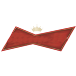 Логотип в виде красной бабочки сверху корона.