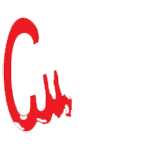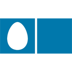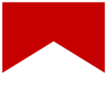 Логотип: петух в треугольнике. Белый петух в красном треугольнике.
