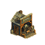 В этой постройке вы можете производить следующие материалы – Проволока, Цепи, Огонь, Пила, Железо, Гвозди. Вам нужно нанимать рабочих, что бы кузница могла работать.