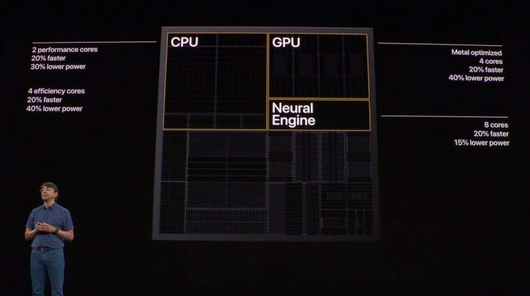 - Нейронный блок Neural Engine содержит до 8 ядер, как и ранее. Он также стал производительнее предшественника на 20% при уменьшении энергопотребеления на 15%;