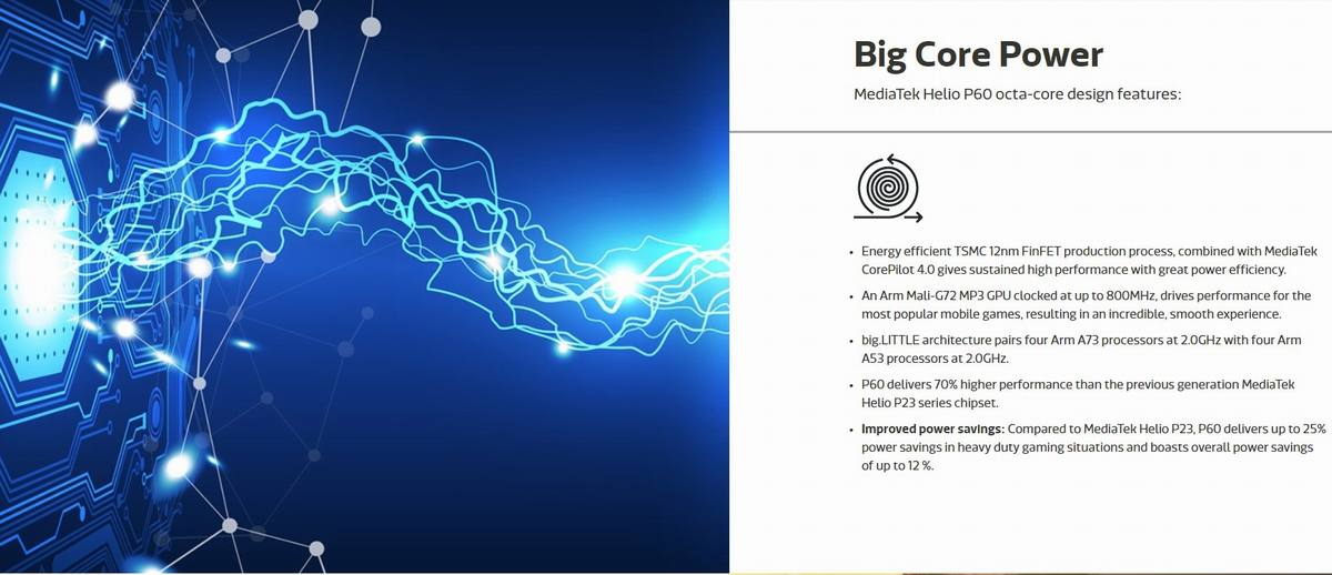 В прошлом году стало известно, что компания Mediatek решила отказаться от флагманской линейки процессоров Helio X и сосредоточится исключительно на бюджетных, средних и субфлагманских решениях. Изначально говорилось только о выпуске таких процессоров, как Helio P40 и P70, но неожиданно Mediatek анонсировала Helio P60, который уже успел пройти тестирование на реальном смартфоне. На самом деле это отличная работа Mediatek, ведь компания очень долго удерживала в секрете выход мощного чипсета, аналога Snapdragon 660. На официальном сайте производителя также недавно появились полные спецификации и описание возможностей новинки. Если верить Mediatek, то на сегодняшний день Helio P60 является лучшим чипом компании и он включает в себя не только мощные ядра, но и популярный нынче нейроморфный блок. Помимо высокой производительности, Helio P60 обладает еще и отличной энергоэффективностью благодаря хорошей оптимизации и 12-нм техпроцессу. Что еще интересного кроет в себе новинка, давайте подробно разберемся.