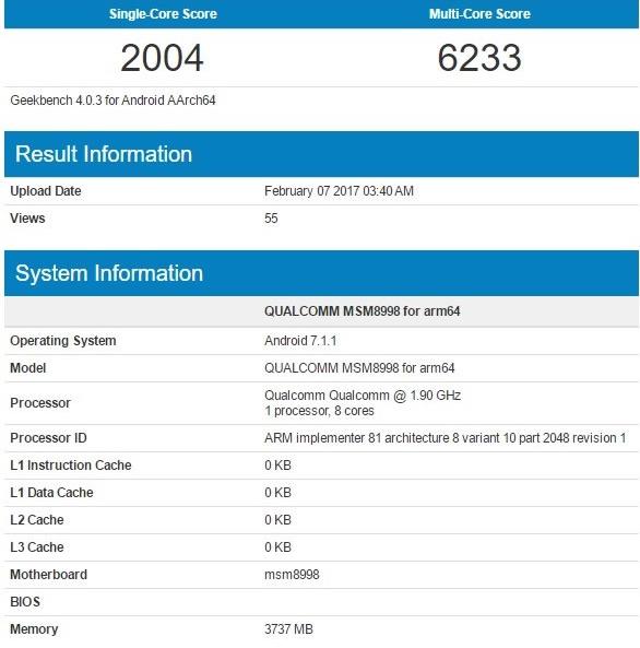 Snapdragon 835 засветился в GeekBench