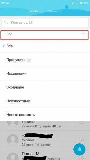 Как в приложении Телефон на Xiaomi отсортировать контакты по типу - входящие, исходящие и т.д.?