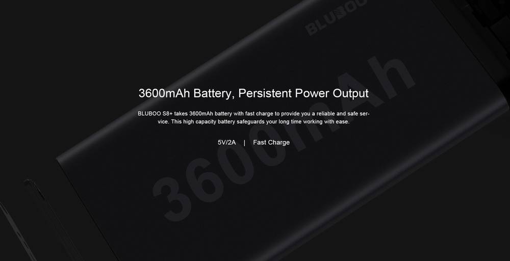 Каждый из нас желает быть самостоятельным и максимально автономным, поэтому большое время жизни смартфона от одной зарядки для нас крайне важно. Никого и никогда не устраивало постоянно сидеть у розетки, и это понимают в Блюбу. Новый флагман Bluboo S8+ получил батарейку на 3600 мАч - не рекорд, но и немало как для такого не прожорливого девайса. Не забыли и о быстрой зарядке, которая наполняет аккумулятор энергией от 0 до 100% менее чем за 2 часа. В целом автономность Bluboo S8+ находится в пределах 1,5 дней при стандартном сценарии использования с соц. сетями, играми, поиском в интернете.