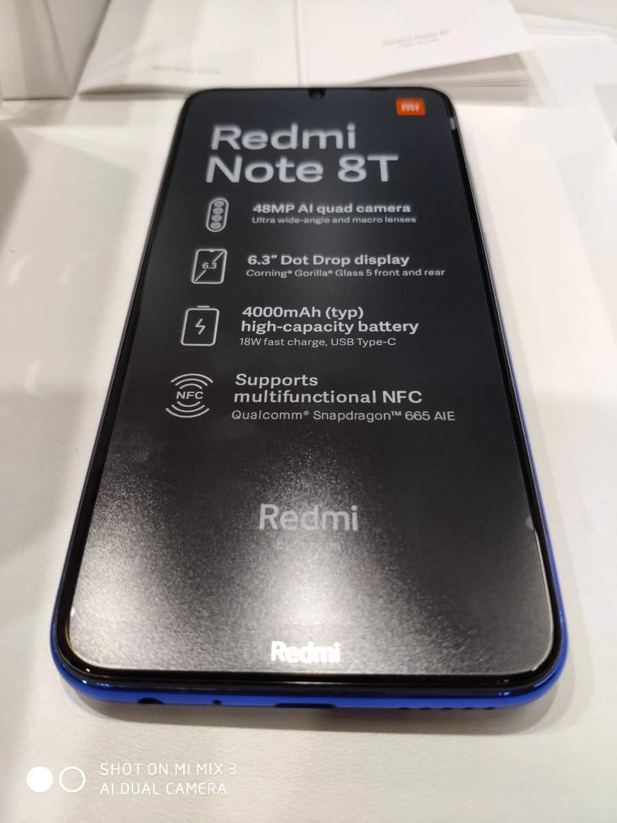Фотографии инсайдера Sudhanshu показывают аппарат в синем цвете, а также позволяют поближе познакомиться с самим устройством. Redmi Note 8T оснащен 6,3-дюймовым дисплеем с каплевидным вырезом под фронтальную камеру и Corning Gorilla Glass 5 с обеих сторон. У него имеется четырехмодульная AI камера с главным сенсором на 48 МП, которая дополнена широкоугольным модулем, а также макрокамерой.