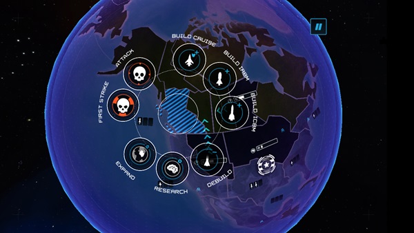 Хоть в First Strike эффектов практически нет, графика приятная. Разобраться с управлением, в принципе, не сложно: разработчики свели возможности до минимума, оставив только всё необходимое для ведения ядерной войны. Вы сможете расширять свою страну, захватывая территории, направлять силы на изучение новых технологий, усиливать оборону или же строить оружие. Пустить ракету не составляет труда - нужно просто обозначить цель в любой точке земного шара. А чтоб наверняка, можно выпустить все ракеты одновременно. После попадания, вы узнаёте, сколько миллионов людей было уничтожено и какого города не стало. Если с обороной всё в порядке, вы можете сбить ракету, летящую в вашу сторону. Таким образом, в игре Первый Удар можно попытаться сохранить на Земле мир, ну или, наоборот, уничтожить противников, посылая ракеты всем подряд. Но не стоит забывать, что оружие есть не только у вас и что First Strike, к счастью, всего лишь игра. Приведите свою страну к победе, продумывая ходы и разрабатывая хитроумные планы. Предлагаем посмотреть видео игрового процесса.