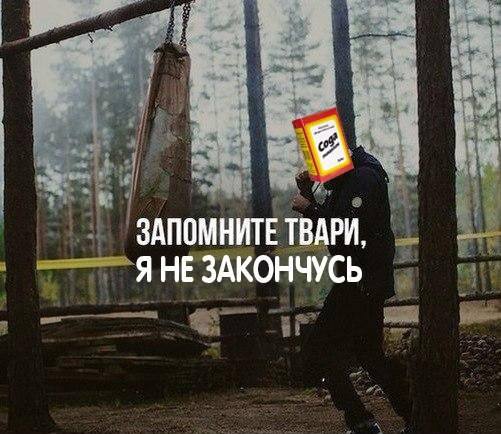 Мем с фото человека, отрабатывающего удар на боксёрской груше. Картинка вырвана из пацанских пабликов разного разлива и стала популярной только в феврале 2018 года. Вместо головы человеку дорисовывают самые разные предметы и дописывают фразы с соответствующим им смыслом. Изначальная картинка с боксером имела подпись "Запомните твари, я не сломаюсь", что и вызвало бурную фантазию у мемоделов. В общем, мем подхватили в феврале многие паблики и вот что, так скажем, наклепали.